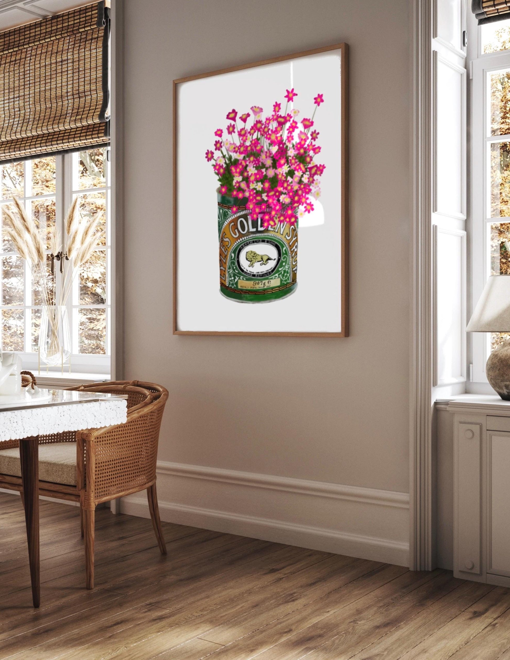 Flower Art Print: Golden Syrup Tin, Foodie Kitchen Decor, Gardener, Wall Art Poster