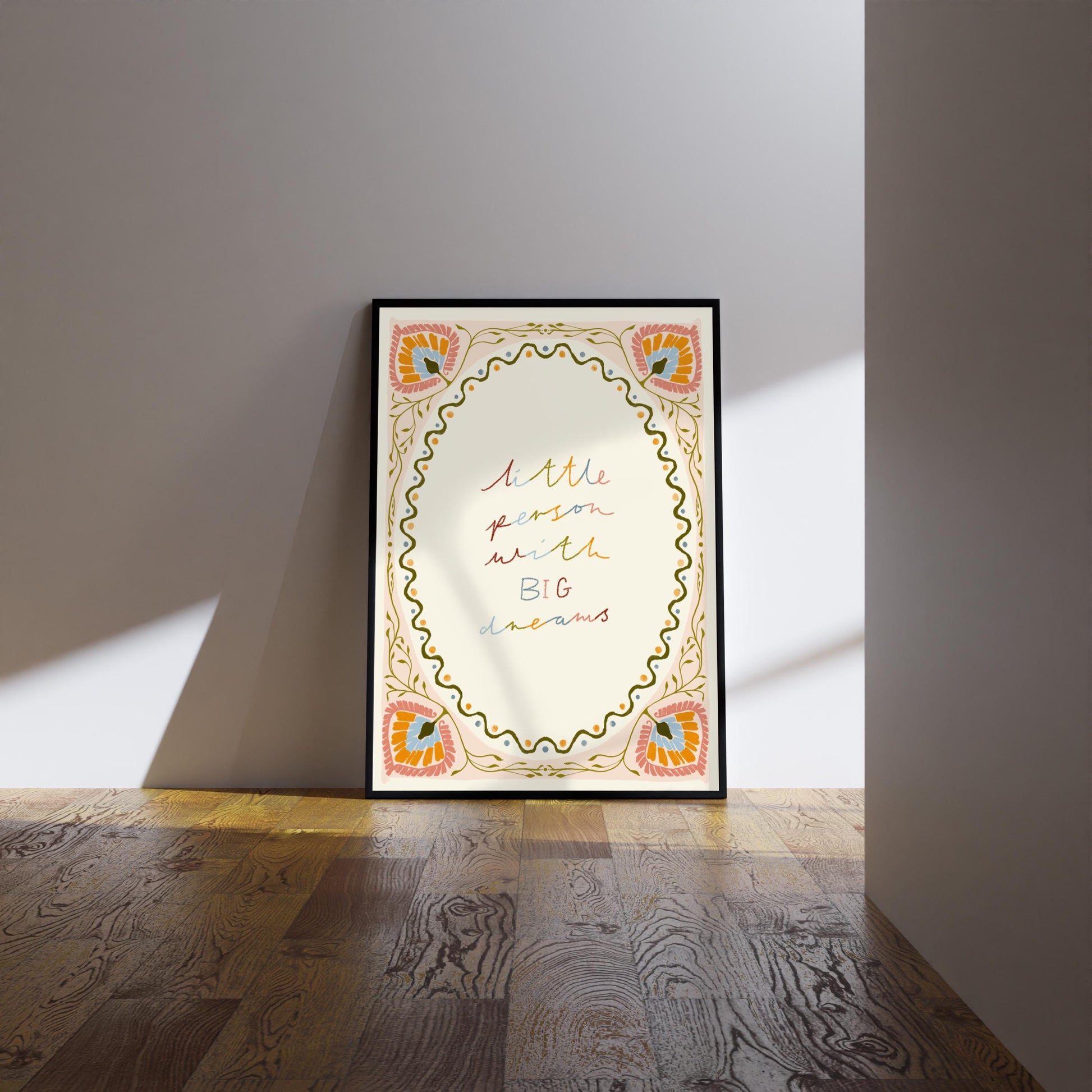 Folk floral Print: Little Person with Big Dreams | Watercolour boho-style floral illustration