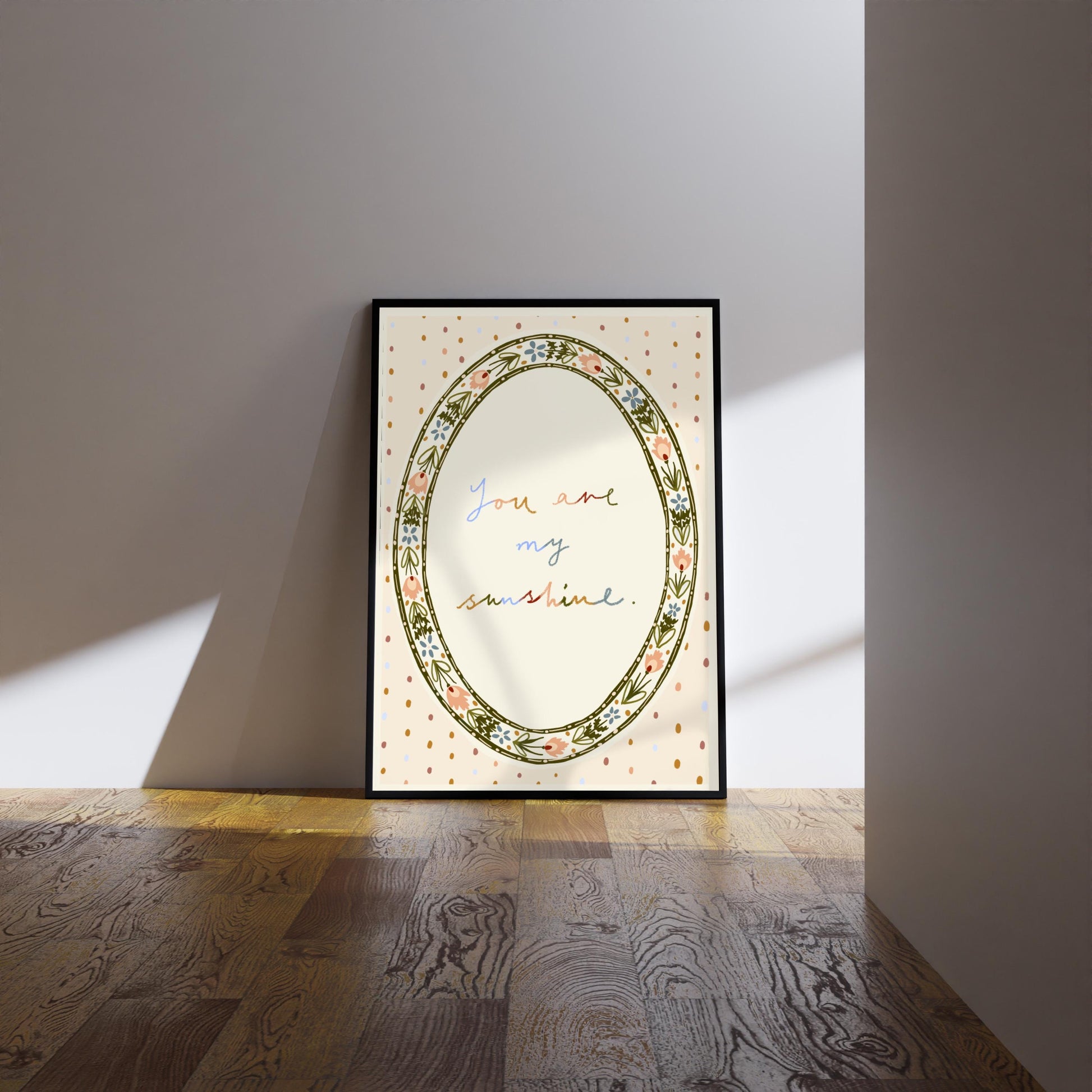 Folk floral Print: You Are My Sunshine Watercolour boho-style floral illustration