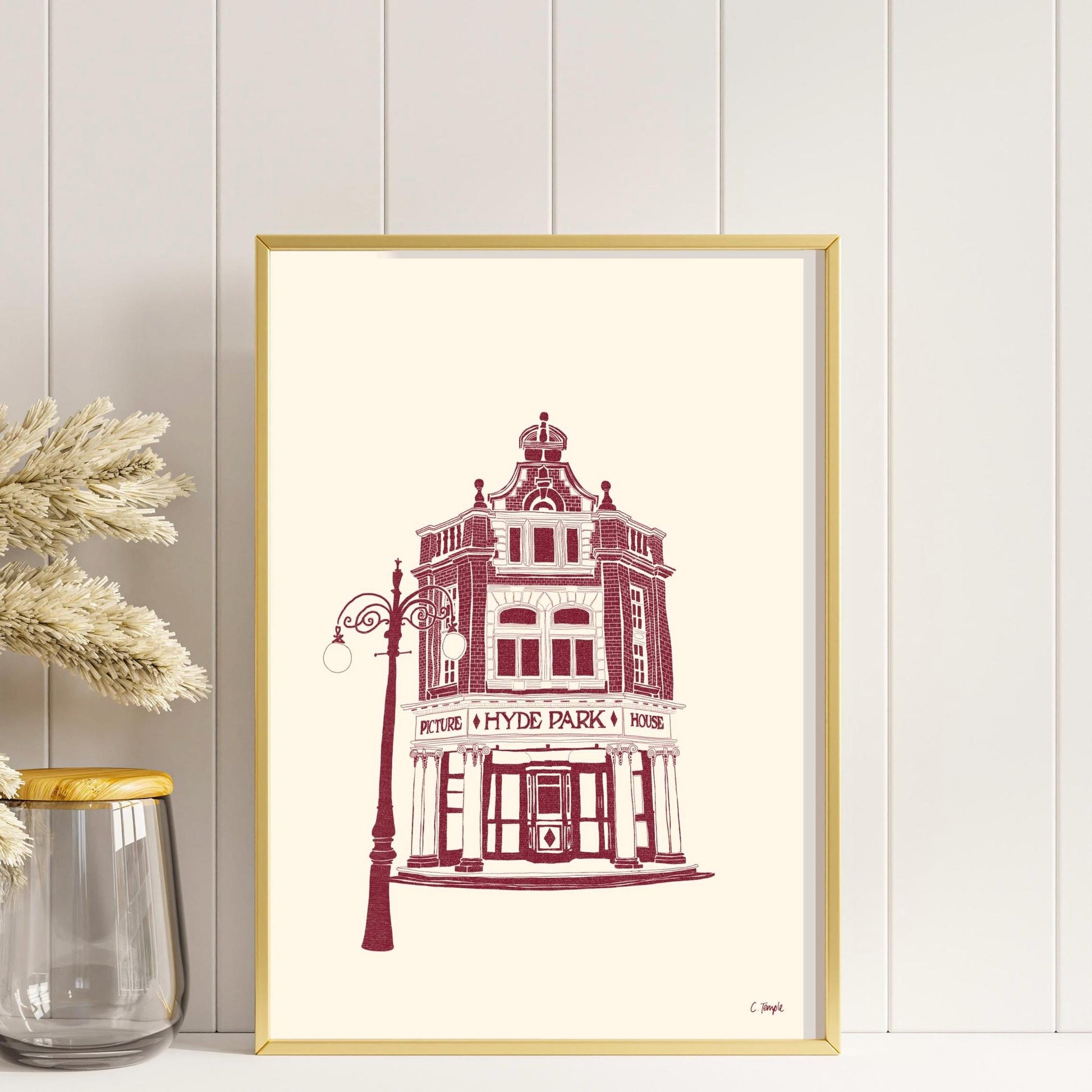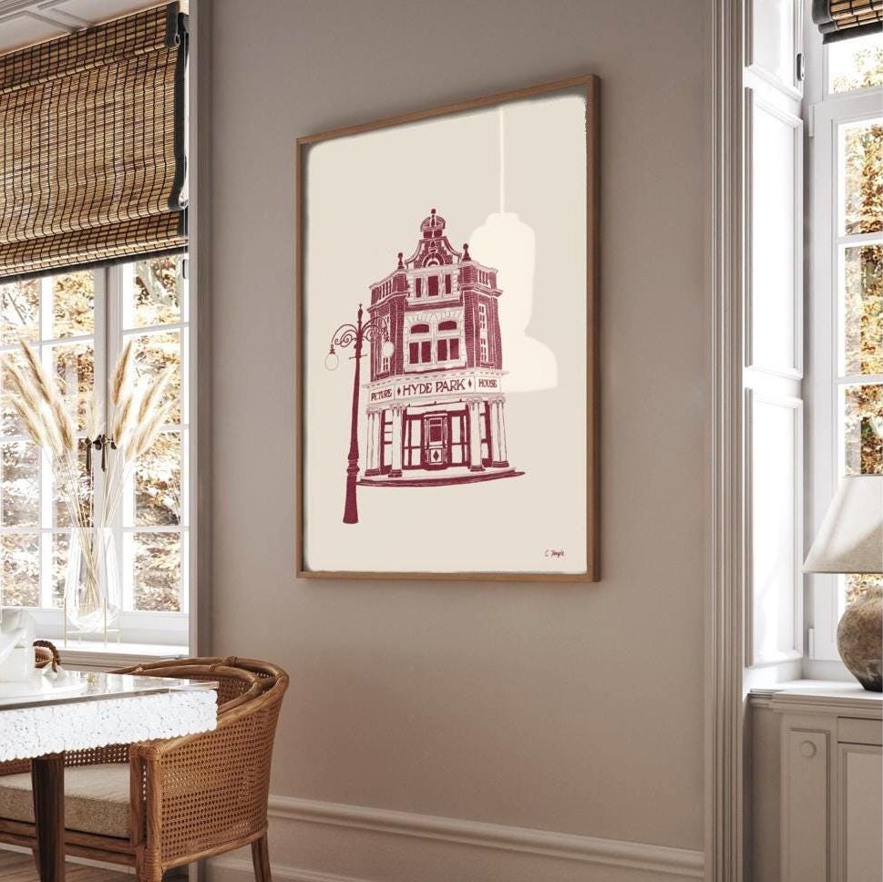 This print is one for those who have happy memories at Hyde Park Picture House and love the architecture of Leeds, adding character to your home. This print comes in the characteristic colour of the picture house.