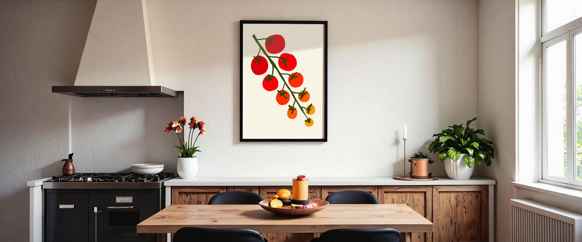 Tomato Vine Kitchen Print: Retro Foodie Wall Art