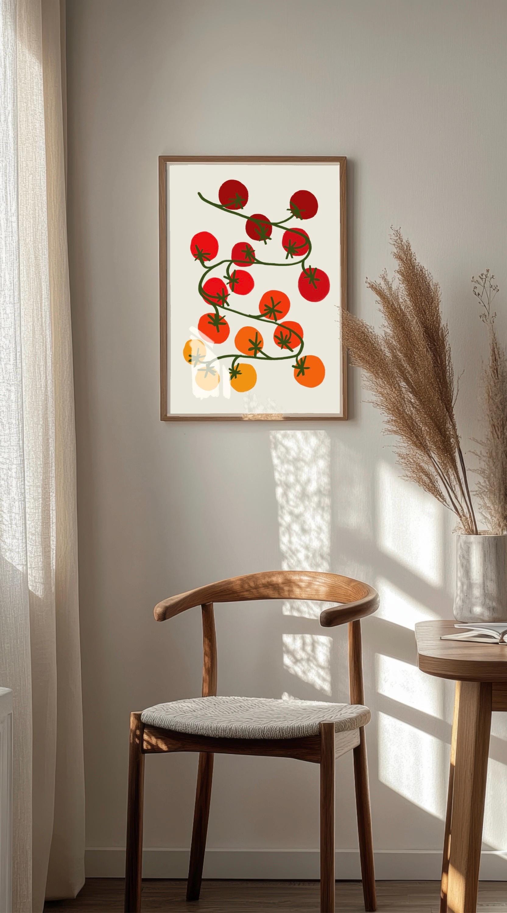 Tomato Vine Kitchen Print: Retro Foodie Wall Art